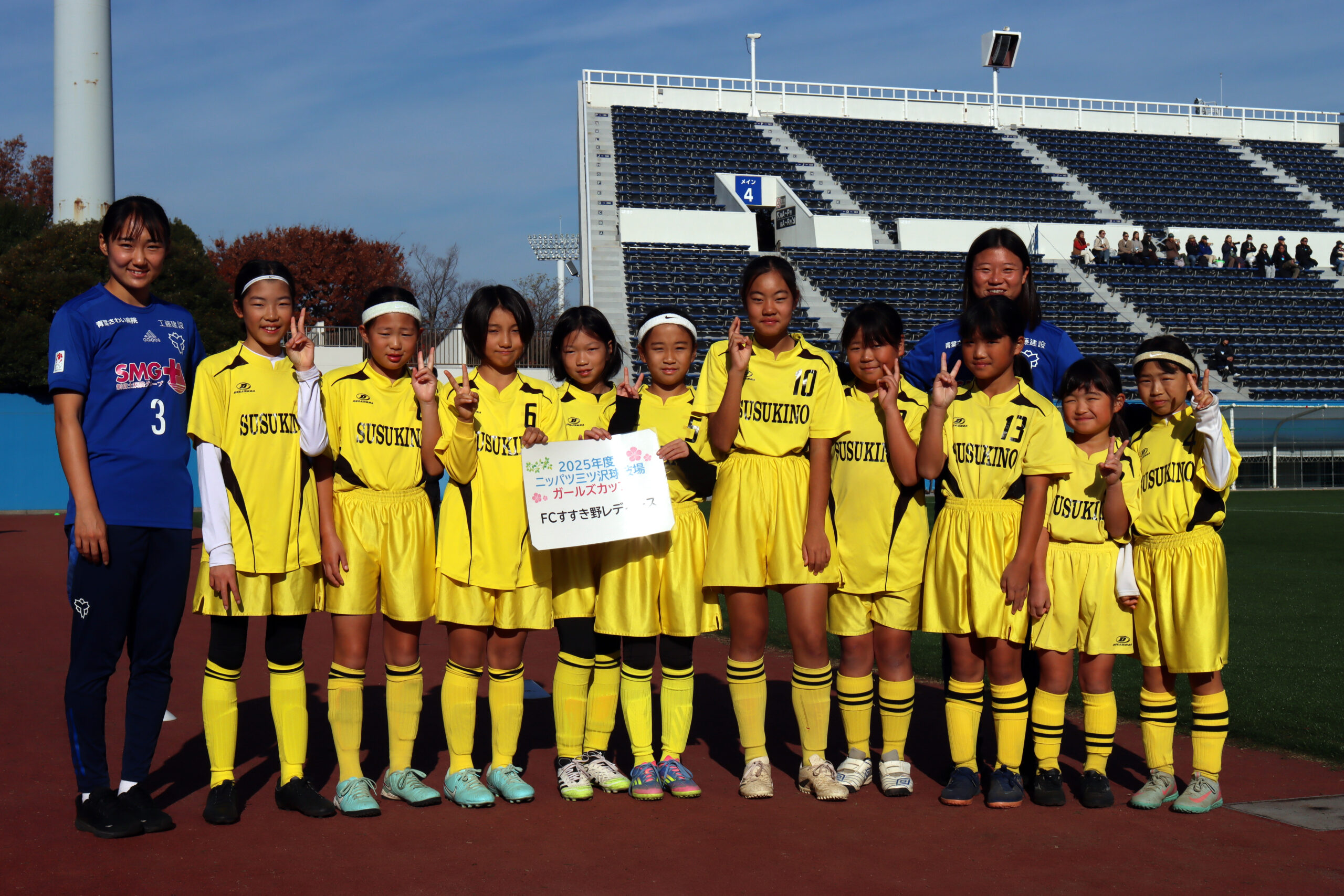 「2025ニッパツ三ツ沢球技場ガールズカップ」4位入賞! 2026 4/20 チームの活動 2025年11月24日2026年4月20日 2025年11月24日に開催された「2025ニッパツ三ツ沢球技場ガールズカップ」において、すすき野レディースは予選リーグ4位でした。 チームの活動 「第33回カトレア少女大会」9位 「第37回すすき野招待杯」3位! 関連記事 「神奈川県少女サッカーU-10大会」ブロック優勝! 2025年12月7日 「第37回すすき野招待杯」3位! 2025年11月30日 「第33回カトレア少女大会」9位 2025年9月21日 原FCなでしこフットサルカップ 2025年3月9日 港北区少女選抜との練習試合 2025年3月2日 当チームの選手がトレセン合格 2025年3月1日 「あざみ野キティーズカップ U-10」優勝!! 2025年2月23日 あざみ野・すすき野合同チームが「緑区大会(U-10)」で準優勝! 2024年12月21日